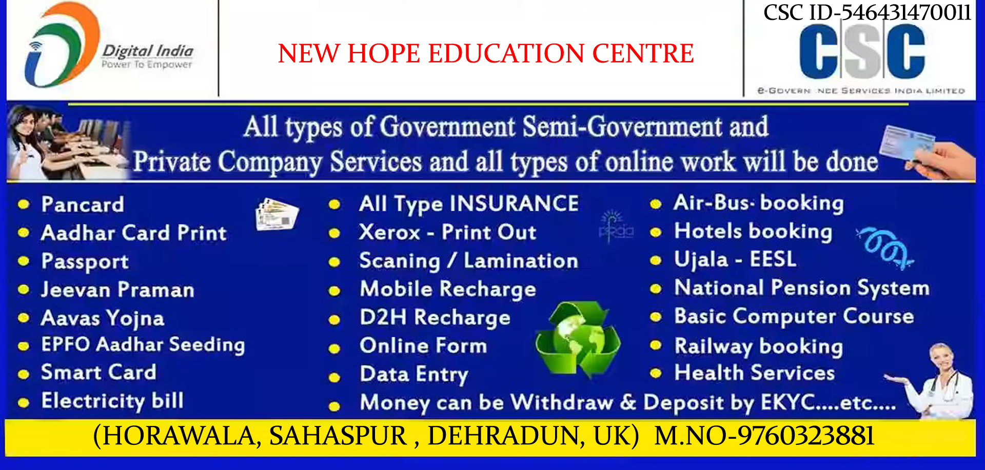 First of all, I would like to express my gratitude to you and thank you whole heartedly that you have selected the Bright Career Institute for your bright future , and also to tell you that we always take for you the course that is high in demand in the present time and in the coming time and the NEW HOPE EDUCATION CENTRE is certified by the Government of India.